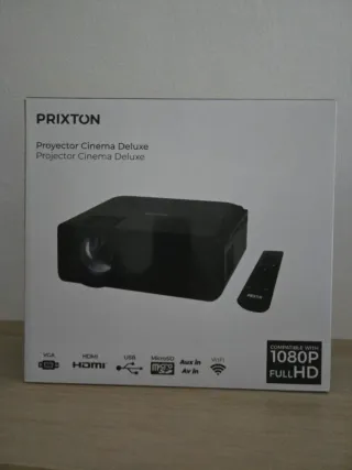 Proyector de cine de la marca Prixton. - Compatible con la calidad Full HD 1080P (1280x720). - Varias conexiones disponibles: VGA, HDMI, USB, MicroSD, Aux in/Av in. - Conexión WiFi. - Puede reproducir imágenes de hasta 230" pulgadas. - Altavoz integrado de 5W con nivel de sonido hasta 50 dB. - Lámpara de salida de 7.000 lúmenes. - Bombilla LED con + de 20.000h de duración. - Incluye mando a distancia, adaptador de corriente, instrucciones y protector de lente. Solo se ha utilizado para ver una única pelicula. #proyector #regalo #regalooriginal #navidad #cumpleaños #oferta #oportunidad #ocasion #ganga #sabadell #barcelona