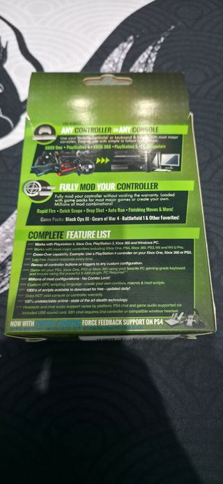 Adaptador Cronusmax Plus para consolas y PC. - Permite usar casi cualquier mando en cualquier consola. - Incluye soporte para XBOX One, PS4, XBOX 360, PS3 y PC. - Permite modificar mandos sin anular la garantía. - Incluye game packs para juegos populares como Halo, Call of Duty, Battlefield y Mortal Kombat. - Adaptador Bluetooth para mandos inalámbricos PS4/Wii incluido.