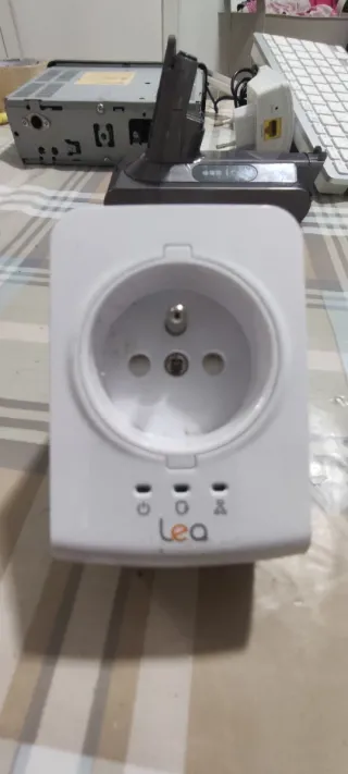 Adaptador de red CPL (Courant Porteur en Ligne) de la marca Lea. Permite extender la red de internet a través de la instalación eléctrica. - Conexión CPL. - Marca Lea.