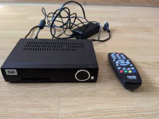 Decodificador de satélite en color negro. Se encuentra en perfecto estado. - Incluye mando a distancia. - Adaptador de corriente.