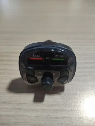 Transnsmisor FM para coche te permite escuchar musica, cargar dispositivos y control para llamadas. Nuevo sin estrenar