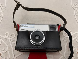 Camara coleccion vintage. Fabricada desde 1970 por Kodak. Este modelo X utiliza flash magicubes sin adaptador y sin necesidad de baterías para excitarlo. Funciona con cartuchos de película de 126. Las velocidades de obturación eran de 1 / 80 seg. (luz solar) a 1 / 40 seg. (luz tenue o Flash). Tiene una lente de 1:11 / 43mm de foco fijo de metacrilato.