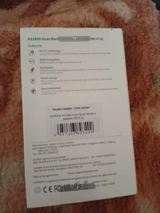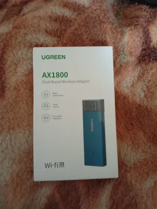 Adaptador inalámbrico UGREEN AX1800 de doble banda. - Tecnología MIMO para transmisión estable. - OFDMA para menor latencia. - Protección de encriptación WPA3.