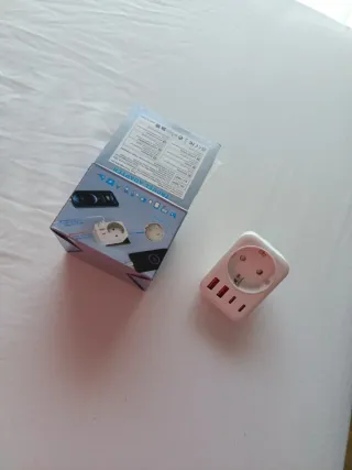 Adaptador de corriente universal para tus viajes. Permite conectar tus dispositivos en diferentes países. - Puertos USB-A: Max 5V/2.4A - Puertos USB-C: Max 5V/3A - Incluye seguro para niños (Child lock) - Fabricado en China
