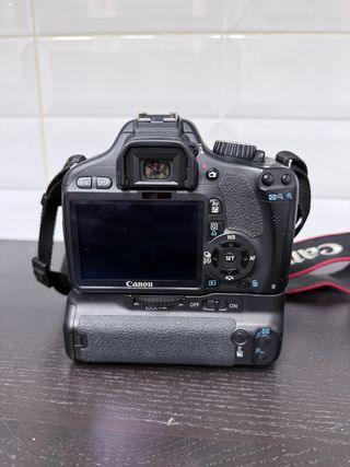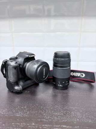 Se vende cámara Canon EOS 550D junto con un objetivo Canon EF 75-300mm f/4-5.6 III. - Cuerpo de cámara Canon EOS 550D. - Objetivo zoom Canon EF 75-300mm. - Correa para el cuello Canon. - Adaptador para dos baterias simultaneas y fotografia vertical.
