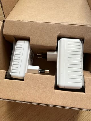Adaptadores PLC TP-Link AV500 para extender tu red por la línea eléctrica. Los cables no los tengo, vale cualquier cable de los que vienen con el router. - Conexión Ethernet. - Diseño compacto.