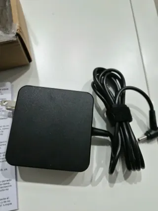 Adaptador de corriente negro para portátiles Asus. - Diseño compacto y ligero. - Cable de alimentación incluido.