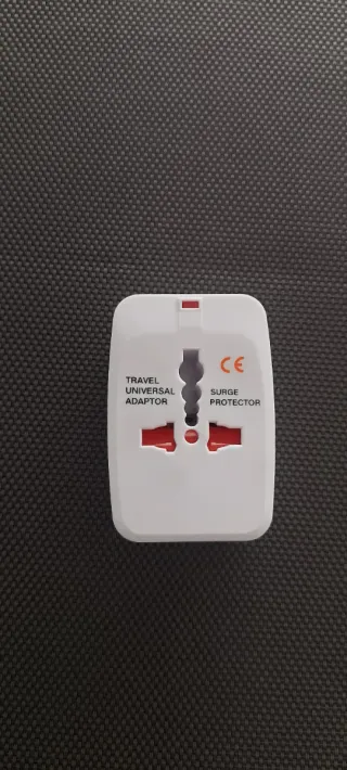 Adaptador de enchufe universal todo en uno. - Diseño compacto y portátil. - Incluye protección contra sobretensiones (Surge Protector). - Certificación CE. - Nuevo a estrenar
