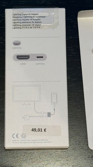 Adaptador Lightning Digital AV de Apple. - Conector Lightning para dispositivos Apple. - Puerto HDMI para conexión a pantallas. - Puerto de carga Lightning adicional. - Usado un par de veces,lo vendo porque mi nuevo IPhone tiene USB-C - Escucho ofertas serias ****VER MIS VALORACIONES ****