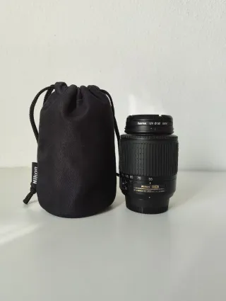 Teleobjetivo Nikon AF-S DX 55-200mm f/4-5.6G ED, ideal para fotografía a distancia, naturaleza, deporte y retrato. Muy buen estado y funcionamiento perfecto. Incluye: • Teleobjetivo Nikon 55-200mm • Filtro Hama UV Ø52 • Tapa delantera original Nikon • Tapa trasera original Nikon • Parasol Nikon • Bolsa Nikon acolchada para objetivo Cristales limpios, sin hongos ni rayones. Enfoque automático rápido y preciso. Compatible con cámaras Nikon DX. Objetivo cuidado y siempre usado con filtro protector. Se puede probar sin compromiso. Entrega en mano o envío por Wallapop. Precio razonablemente negociable. No cambios.