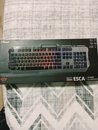 Teclado gaming de la marca Trust, modelo GXT. - Diseño con cuerpo metálico. - Incluye 12 teclas multimedia. - Soporte para teléfono. - Retroiluminación RGB. - Diseño QWERTY.
