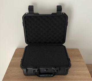 Maletín negro diseñado para proteger equipo fotográfico. Medida exterior 363x290x136 mm y interior 326x246x126 mm. Peso 1,5 kg. - Construcción robusta y duradera. - Cierres de seguridad. - Asa integrada para fácil transporte. - Espumas precortadas - Botón de vacío