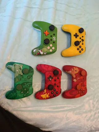 Conjunto de cinco mandos de videojuegos con temática de Pokémon. Cada mando presenta un diseño único inspirado en diferentes personajes. Alguno lo he probado y funciona alguno no lo he probado ya que para mi son decorativos Se vende el lote entero no separo Hago envios - Mando verde con diseño de Yoshi. - Mando amarillo. - Mando verde con diseño de Bulbasaur. - Mando rojo con diseño de Pikachu. - Mando rojo con diseño de Charmander.