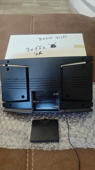 Radio portátil compacta con sintonizador FM/AM. - Diseño en color negro y gris. - Indicadores de frecuencia FM y AM. - Botón de encendido/apagado. Sintoniza y se escucha muy bien.