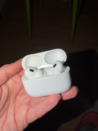 Auriculares inalámbricos AirPods Pro de segunda generación.Están como nuevos prácticamente nada de uso, si necesitas mas detalles,información o fotos no dudes en contactar conmigo! Incluye todos sus accesorios: -Cajas -Instrucciones -Almohadillas de repuesto sin usar -Cargador sin abrir ni usar -Estuche con los auriculares
