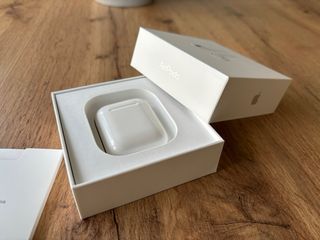 Airpods de segunda generación de Apple. Estan bastante usados pero en cuanto su funcionamiento van perfectamente(altavoces, micrófonos, sonido...). El unico incoveniente es que al auricular derecho le dura poco la batería(1h aproximadamente) pero por lo demás van muy bien. Están limpios, pero aún asi se nota un poco de suciedad( polvillo que suelta la parte metálica de la caja).