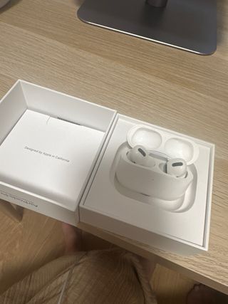 Auriculares inalámbricos Airpods Pro de primera generación. - Incluye estuche de carga. - Diseño ergonómico para un ajuste cómodo. - Incluye caja original y almodillas de repuesto - Están en buen estado. - Hacen un ruido al conectarse que desaparece al de unos segundos.