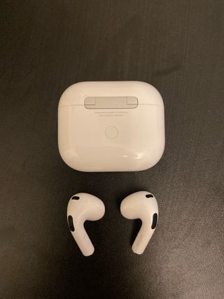 Auriculares inalámbricos AirPods 3 rd generación Incluye estuche de carga. - Estuche de carga con indicador LED. - Un auricular incluido. el otro se me perdió. Se puede cargar con MagSafe. resto de indicaciones modelo, características y demás en las fotos. Sería para recoger en bilbao o alrededores. no hago envíos ni rebajo precio en este producto