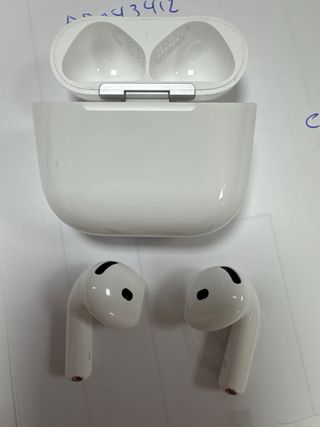 Auriculares inalámbricos en color blanco. Completamente nuevos. Se han abierto para que wallapop no me elimine el anuncio por fraude. Tienen factura y todo. Comprados el 26/02/2026 con oferta de mi compañía movil. Los vendo porque no me interesan y los compre por la oferta. #airpods #apple #4 #airpods4