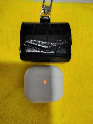 Dos fundas para proteger los Airpods: - Estampado de cebra de plástico duro, con dos partes. - Beis de silocona, para colgar de llavero. Las dos estan sin estrenar.