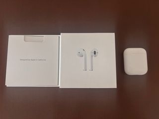AirPods 1ª generación originales. Se venden limpios y desinfectados. Incluye estuche, airpods y cable de carga, todo original. El estuche y uno de los auriculares tienen dos pequeñas marquitas, que se pueden ver en las dos últimas fotos, pero que no afecta en nada a su funcionamiento.