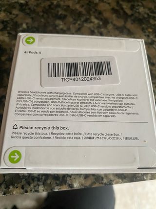 Auriculares ORIGINALES inalámbricos Apple AirPods 4 los vendo ya que he cambiado a los Airpods Pro 3 - Cancelación de ruido activa que funciona genial aún que no tengan almohadillas como los pro - Garantía hasta final de año - Muy buen sonido