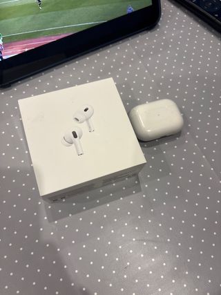 Auriculares inalámbricos AirPods Pro de segunda generación, comprados en Apple Puerta del Sol, totalmente nuevos. - Diseño elegante y compacto. - Estuche de carga incluido.