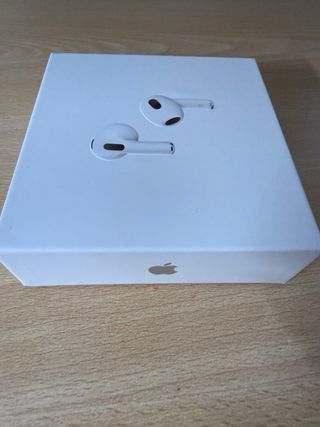 Auriculares inalámbricos AirPods Apple de 3ª generación con estuche de carga MagSafe. Están completamente nuevos, sin abrir. - Diseño elegante y compacto. - Tecnología MagSafe para carga inalámbrica. - Compatible con iOS, iPadOS, watchOS y macOS.