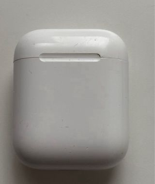 Estuche de carga para AirPods 2 de Apple, en color blanco. . Tiene la batería al maximo - Estuche de carga para AirPods 2. - Presenta algunas marcas superficiales.