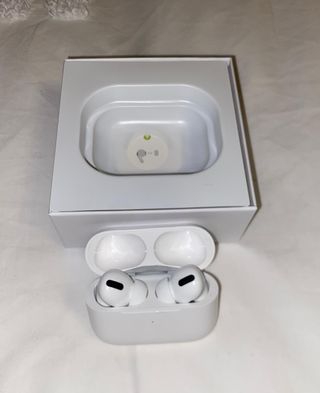 vendo auriculares airpods pro 2019 ,en su caja ,con cable de carga nunca usado , los cascos estan en buen estado , pero EL AURiCUlAR izqueirdo al subir a maximo volumen se escucha un chasquido cuando suena el bajo , no se hacen envios solo entrega en mano