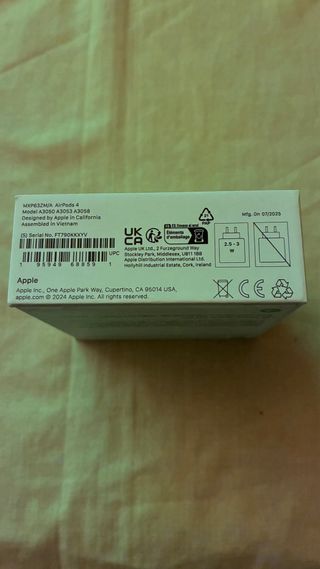 Auriculares inalámbricos Apple AirPods 4. En perfecto estado y comprados en julio 2025, tienen garantía