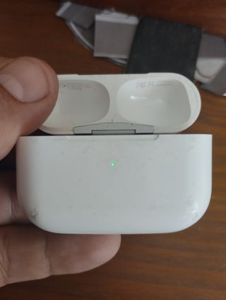 Estuche de carga y funda para AirPods de Apple. Original, se encuentra en buen estado, aunque presenta algunas señales de uso. - Incluye el estuche de carga. - Presenta luz verde, indicador de carga. - Se ofrece funda protectora de regalo.