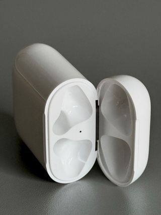 Estuche de carga para AirPods de segunda generación. - Diseño compacto y elegante. - Color blanco. VRLX2Y Solo se incluyen el estuche de carga y el auricular izquierdo; falta el auricular derecho y la batería del izquierdo está agotada. La batería del estuche de carga está en buen estado, pero muy sucia.