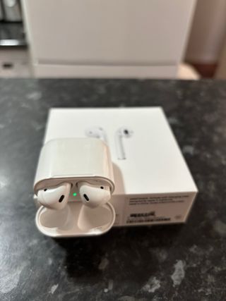 Auriculares Airpods de segunda generación (2019) de Apple originales sin usar, en su caja. Recibidos como premio en un concurso pero yo no tengo IPhone. Compatibles con IPhone, IPad, ordenadores Mac y MacBook.