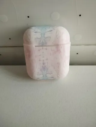 Funda protectora de silicona para AirPods con un diseño único y llamativo. - Estampado tipo mármol con tonos rosados y azules. - Material resistente para proteger tus auriculares.