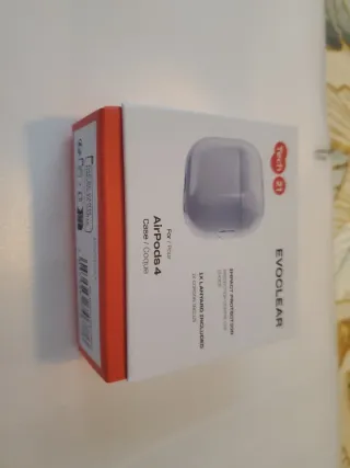 Funda protectora para AirPods 4. - Protección contra impactos. - Incluye cordón. - Diseño transparente. Completamente nuevo, nunca se ha usado. Se compró para un regalo y finalmente no se utilizó. Falta la correíta q se puede enganchar al lado para colgar. Lo perdí y por eso no pude devolver el artículo.