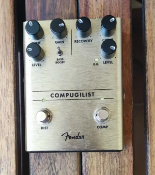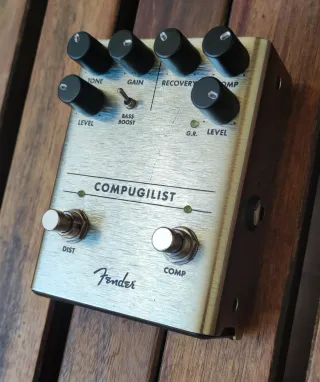Pedal de efectos Fender Compugilist. - Controles de Tone, Gain, Recovery y Comp. - Switch de Bass Boost. - Indicadores LED de G.R. y Level. - Footswitches para Dist y Comp.