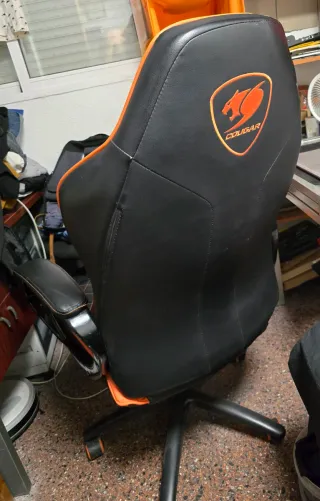 Silla de gaming con un diseño deportivo y ergonómico. Tiene alguna marca de uso pero es muy cómoda y esta en buen estado en general, la vendo porque es muy ancha y no me entra en mi escritorio - Tapicería en piel sintética. - Detalles en color naranja. - Costuras en rombos en el asiento y respaldo.