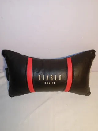 Cojín de apoyo para silla gamer, diseñado para mayor comodidad. - Color negro con detalles en rojo. - Material de cuero sintético. - Logotipo Diablo Chairs bordado. 🚛 Envío rápido.