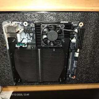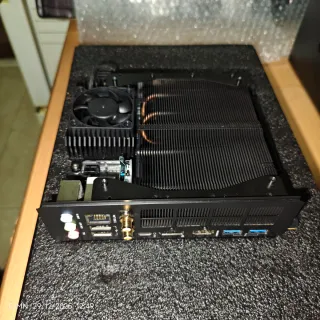 Mini PC Minisforum BD790i con un fallo. - Diseño itx 17x17 compacto y elegante. - CPU AMD 7945HX 16 núcleos 5.4ghz - pcie5 de GPU y SSD - Wi-Fi 6 con antenas incluidas - Panel frontal con varios puertos. - Sistema de refrigeración de SSD con ventilador. Se reinicia sin motivos aparentes. Para quien sepa arreglarlo.