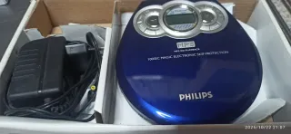 Reproductor de CD portátil de la marca Philips. - Reproduce CDs de audio y MP3. - Protección electrónica contra saltos de 100 segundos. - Color azul brillante.