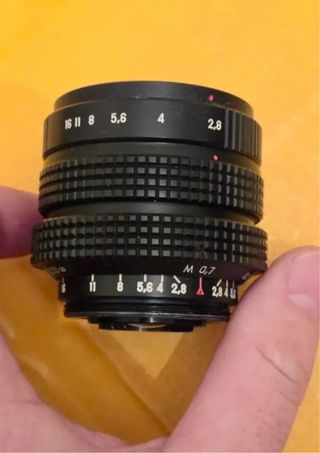 Objetivo fotográfico Mir 1B con una apertura de 2.8 y una distancia focal de 37mm. - Modelo: Mir 1B - Apertura: 2.8 - Distancia focal: 37mm - Número de serie: N92031007 Valido con adaptador para cualquier cámara. Montura m42. Fondo borroso con efecto burbujas. Ideal para combinar con el hellios 44. Se puede reducir la distancia de enfoque fácilmente al igual que invertir la lente delantera y conseguir un efecto muy deseado y buscado. Este objetivo no esta manipulado y esta en perfecto estado.