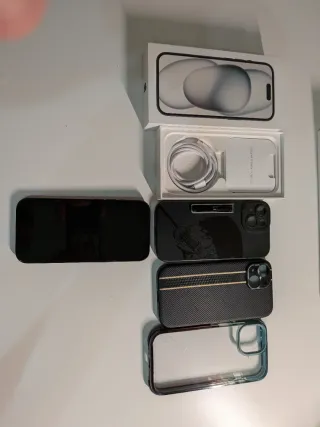 Se vende iPhone 15 con 128GB de almacenamiento y Apple Watch SE de 2ª generación de 40mm. - iPhone 15 con pantalla de 6.1 pulgadas + 3 fundas. - Apple Watch SE 40mm con GPS + dos carcasas protectoras. Los cables de carga son los originales. No se venden por separado, si vienes a regatear, vete por donde has venido.