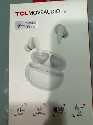 Auriculares inalámbricos TCL Moveaudio S180 en color blanco. Cuentan con cancelación activa de ruido. - Cancelación activa de ruido (ANC). - Transparencia. - Hasta 30 horas de autonomía. - Cancelación de ruido ambiental (ENC).