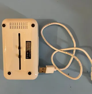 Este cargador de baterías cuenta con un diseño moderno y compacto. Cargador universal - Puerto USB. - Acabado en blanco y negro.