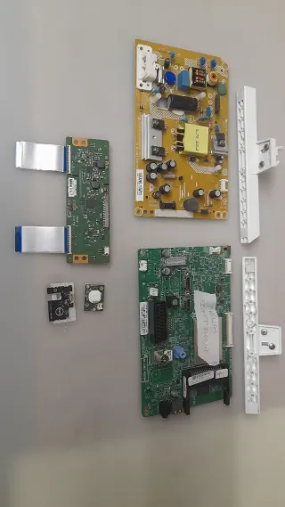 Conjunto de placas y cables para televisor Samsung. - Placa principal (main board). - Placa de alimentación (power supply board). Botonera - Cable flex de conexión. - Módulo de conexión adicional.