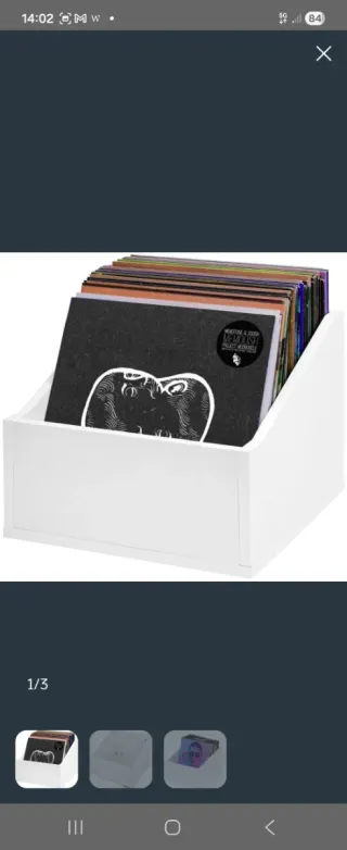 Práctica caja de madera para organizar tus discos de vinilo. - Diseño moderno y funcional. - Capacidad para varios discos.