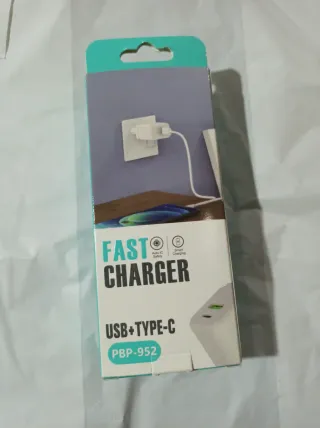 Cargador de pared Gpengkj con doble puerto USB. - Color blanco. - Diseño compacto. - Conector tipo C. - Fabricado en China.