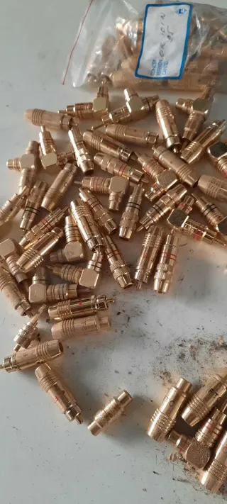 Lote de clavijas de audio de color dorado. Son conectores metálicos. - Material: Metal - Color: Dorado venta en persona no ago envios