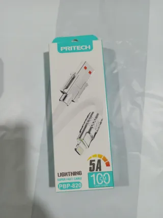 Cable de carga PRITECH para iPhone, modelo PBP-820. - Conector Lightning. - Soporta carga rápida de 5A. - Longitud de 100 cm.